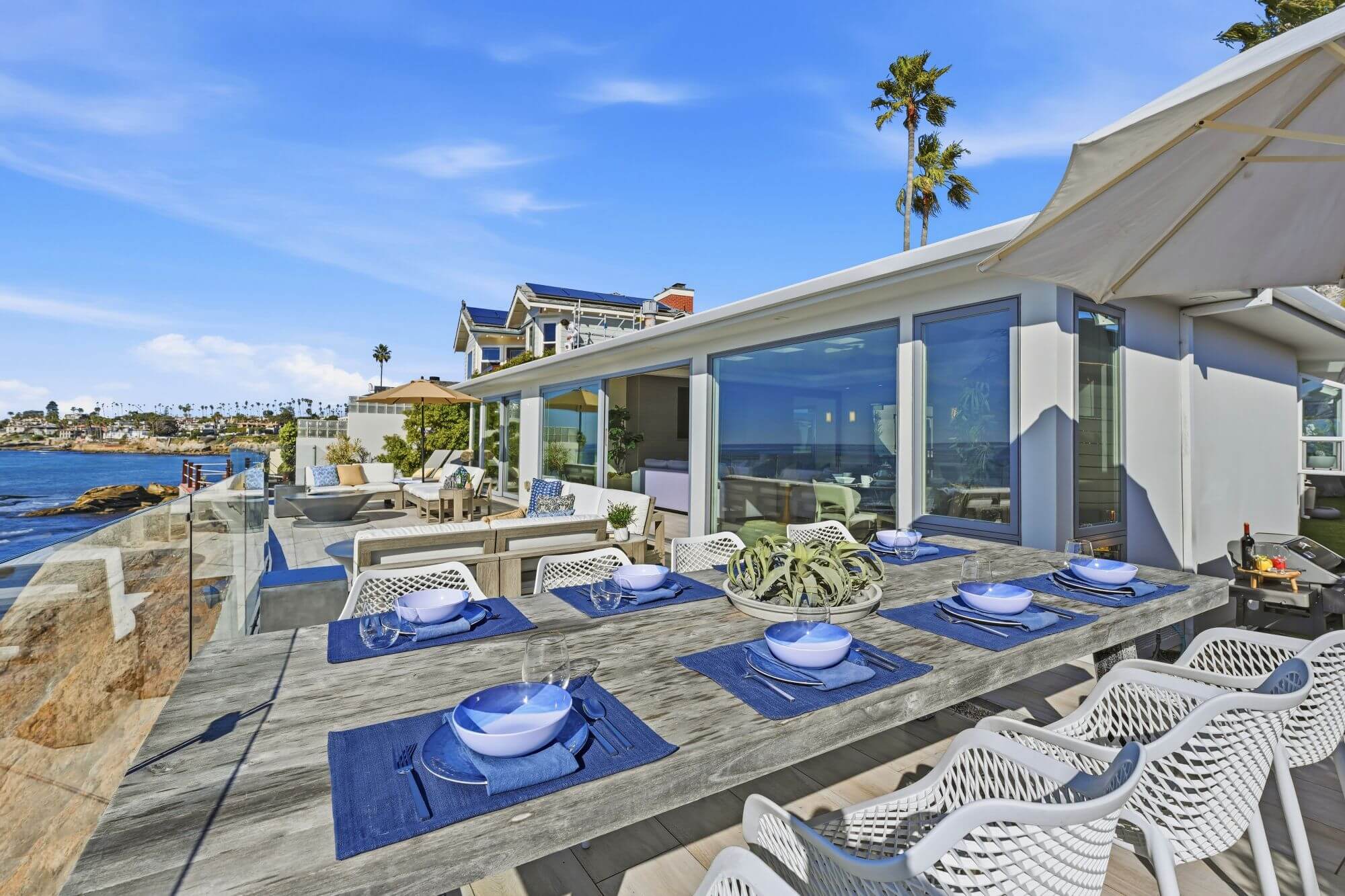 Contemporary elegance abounds in this stunning oceanfront luxury vacation rental, perched on a bluff overlooking the iconic Bird Rock and abundant sea life.